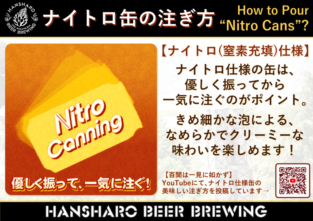 下記リンク先にて、「ナイトロ缶」の注ぎ方に関する動画を掲載しております。よろしければご覧ください。(※通常通り注いでも、美味しく味わえます。)