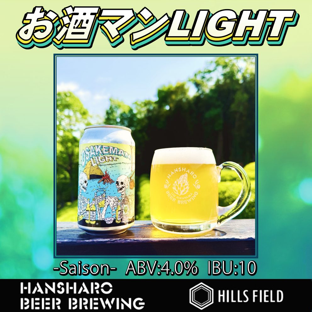キャンプを「最高の思い出」に変えるブランド「HILLS FIELD」とコラボレーション!ホップと酵母によるトロピカルでフルーティーなアロマはそのままに、アルコール4%によるライトな飲み口のSaisonスタイルビールが出来上がりました。お酒を心から愛する人々「お酒マン」達にとって、ゴクゴクと軽やかに飲み進めてしまうこのビールは、強い日差しの照り付けるアウトドアのヒーローになってくれること間違いなし!「お酒マンLIGHT」がキャンプをより楽しくさせ、そして幸せを運んでくれることでしょう。