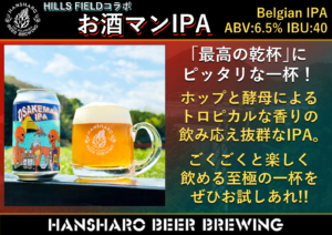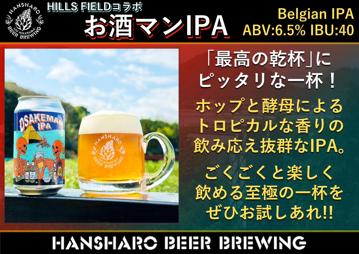 「キャンプで最高の乾杯をしたい」をテーマに、アウトドアで楽しく飲めるIPAスタイルのビールを仕込みました。ホップと酵母によるトロピカルでフルーティーなアロマと、アルコール6.5%による抜群の飲み応えは、お酒を心から愛する人々「お酒マン」達にとってピッタリのクラフトビール!「お酒マンIPA」がキャンプを楽しく、そして幸せを運んでくれることでしょう!