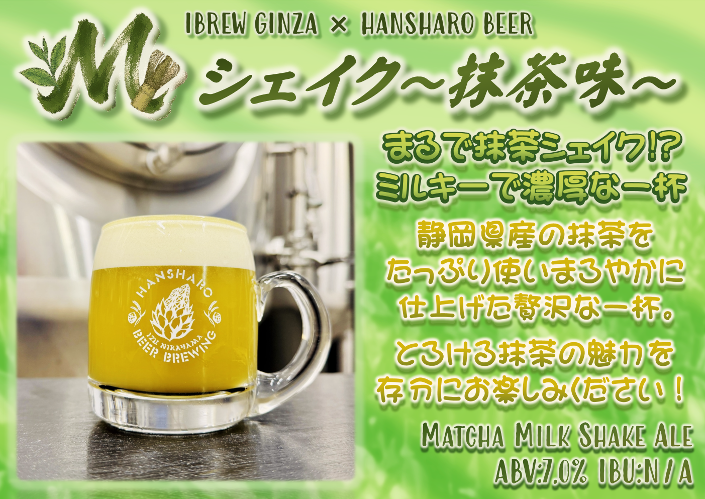 銀座のクラフトビールバー IBREW とコラボレーション!日本はもちろん、海外のクラフトビールラバーにも楽しんでいただけるようなMatcha Milk Shake Aleを仕込みました。