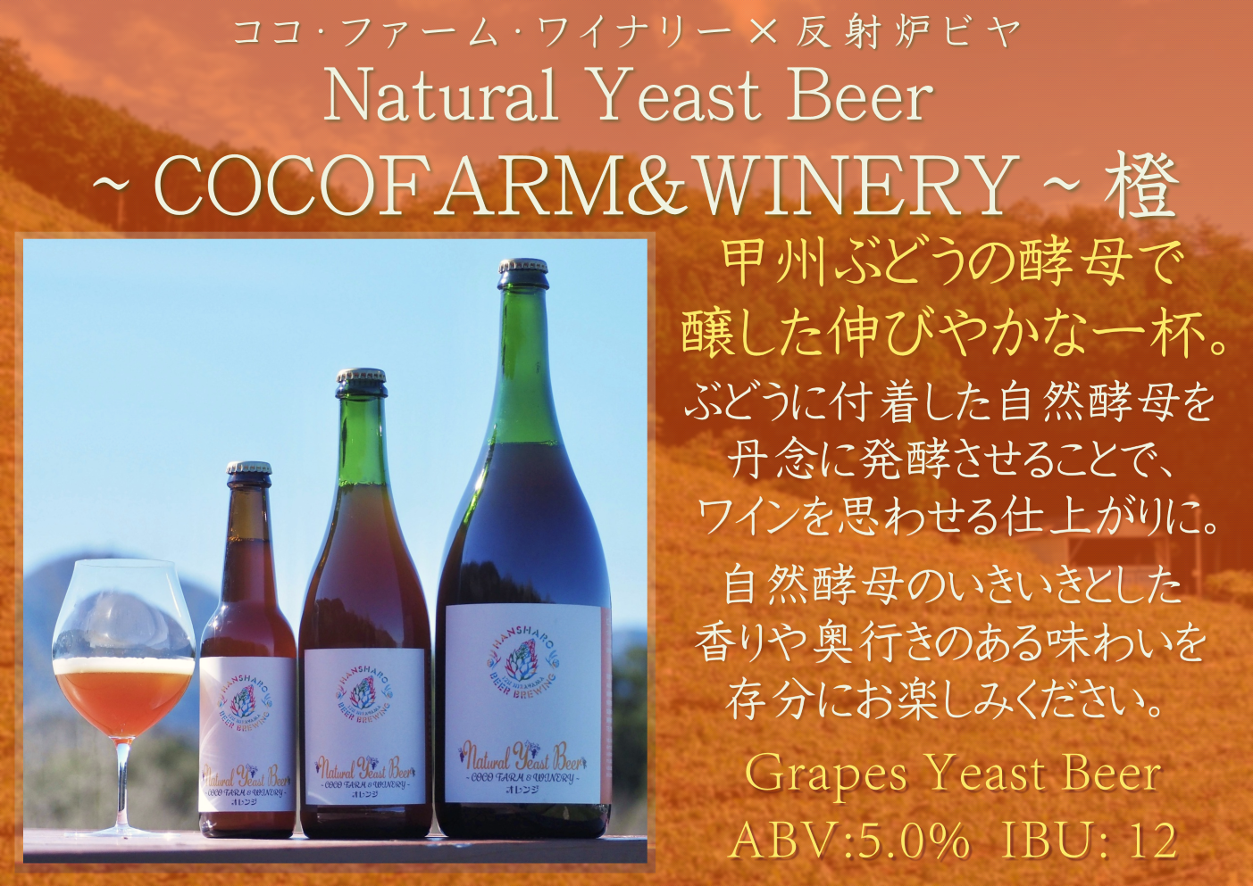 第2弾はココ・ファーム・ワイナリーでオレンジ色のワイン銘柄に使用される「甲州」という葡萄品種を使用!モデルとなったワインに沿って橙色に輝く、伸びやかな香りと風味が特徴の自然酵母ビールが出来上がりました。