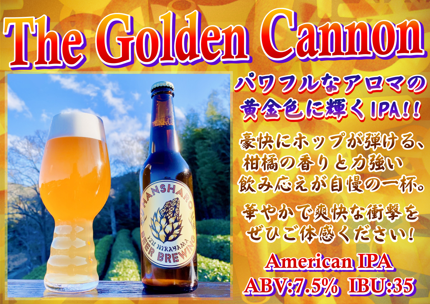 かつて韮山反射炉で製造されていた大砲のごとく、ビールを口にする人々に衝撃を与えるような、黄金色の力強いIPAをぜひご堪能ください!