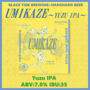 気仙沼でクラフトビールを創ることを誇りとし、世界に誇るクラフトビールを発信する“BLACK TIDE BREWING”とコラボレーション!!両社が家族のように信頼を寄せる気仙沼のゲストハウス“海風”をきっかけに今回の企画が実現しました。反射炉ビヤでは“BLACK TIDE BREWING”が得意とするCGXホップを駆使した香り豊かなIPAを醸造。そこへ気仙沼産の柚子をたっぷりと加え、柑橘の爽快でちょっぴりスパイシーな味わいのビールが完成しました。一口飲めば気仙沼の心地よきUMIKAZEを感じる一杯です!